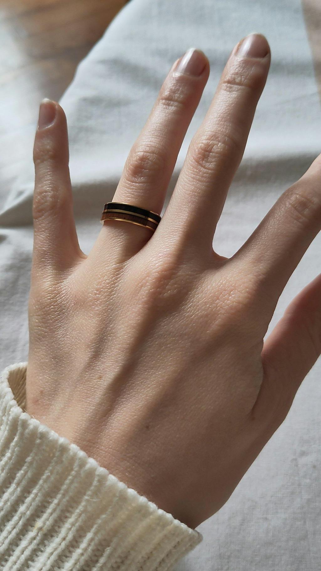 ✔ Dein Holzring sollte sich beim Anziehen sanft über den Fingerknöchel bewegen und anschließend sicher sitzen - ohne Druckstellen.